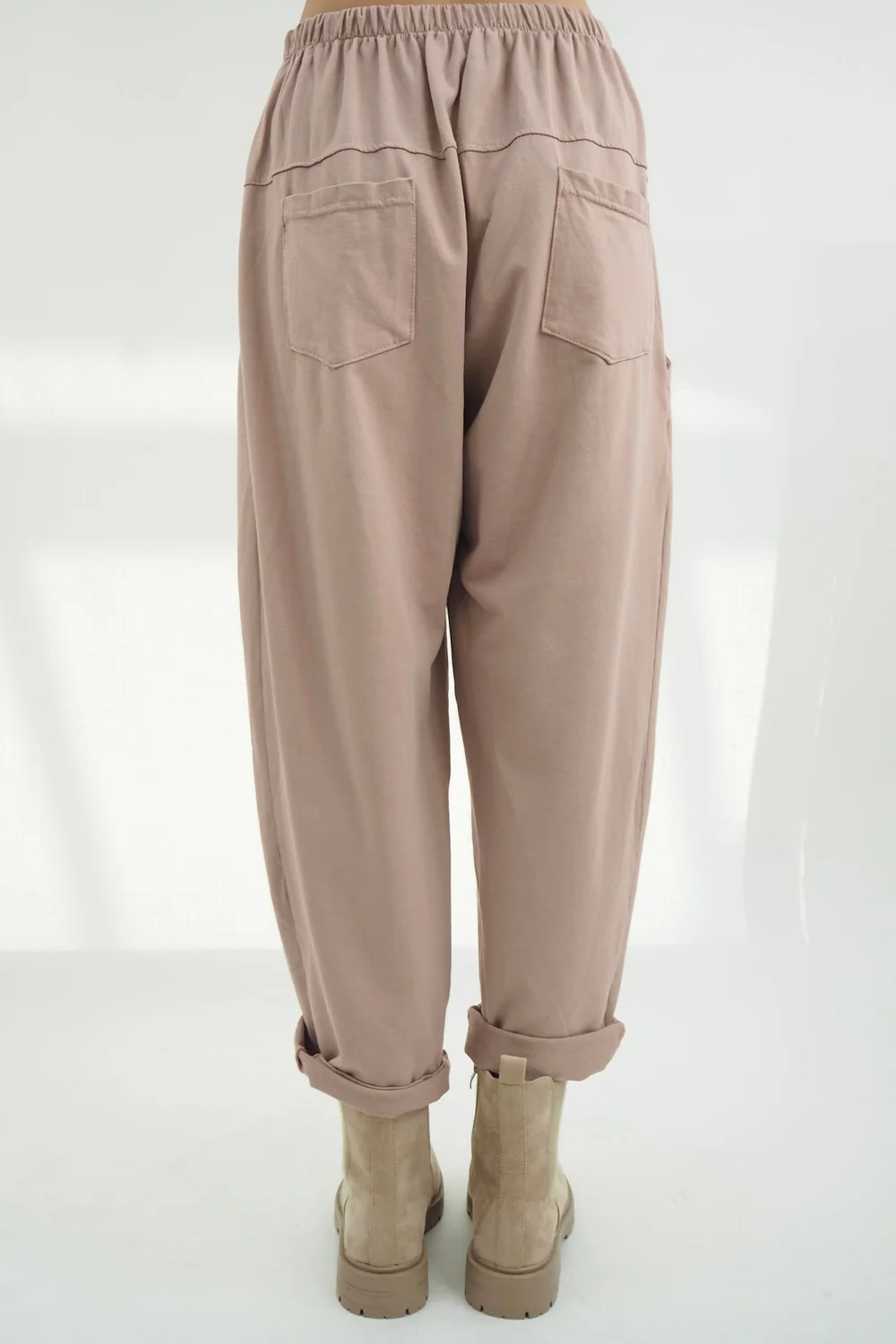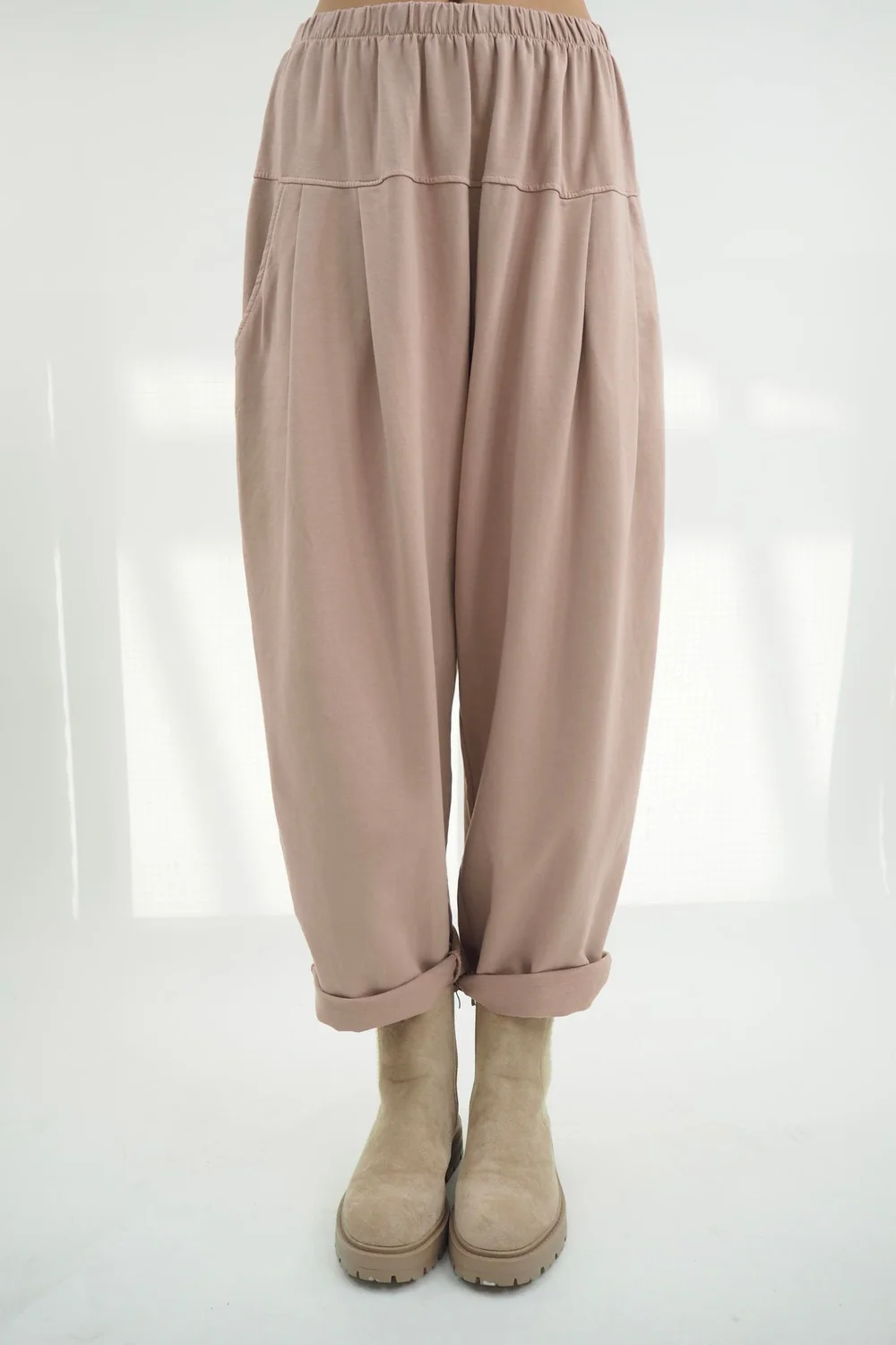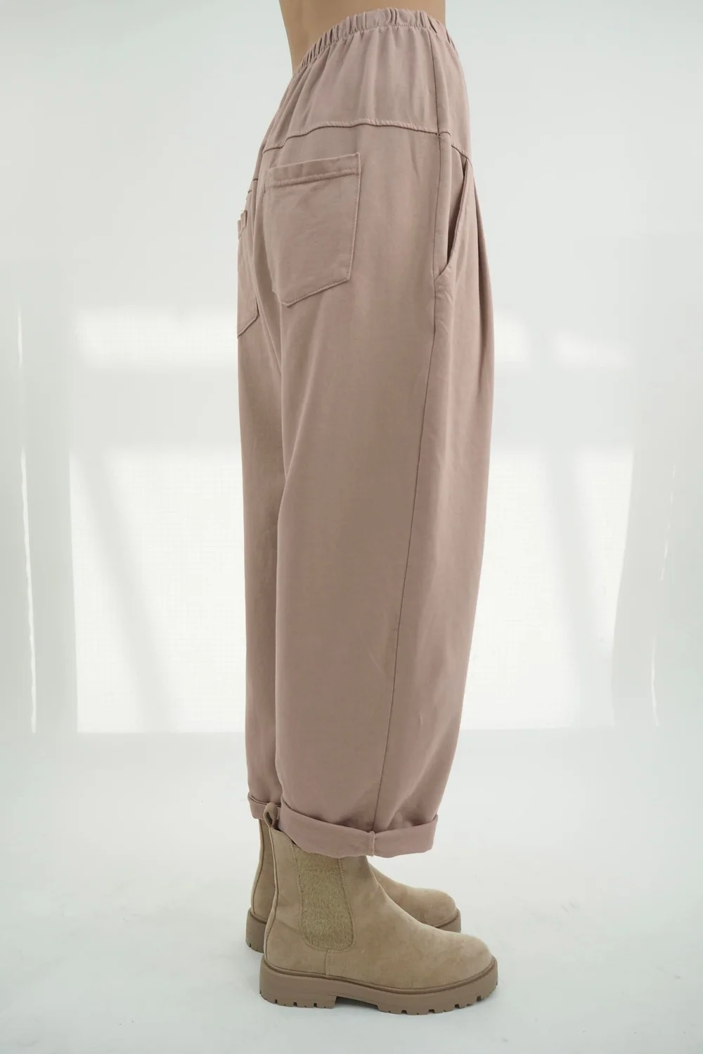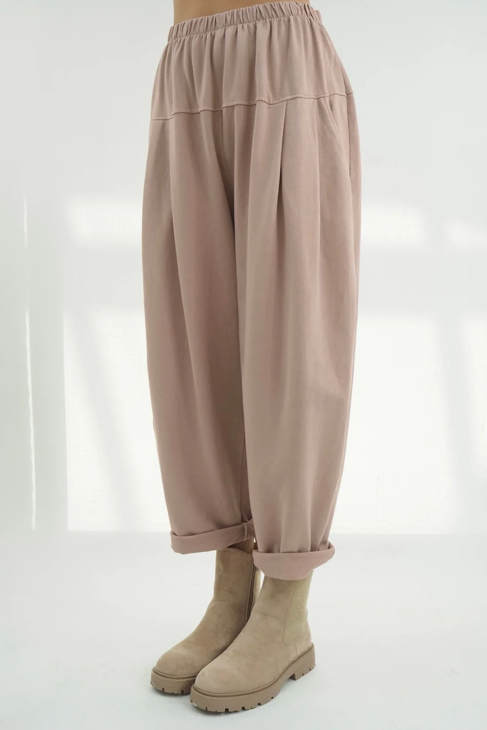 Introducing the epitome of effortless chic, to your wardrobe : our latest piece from Made in Italy clothing, the Made in Italy Apres Flat Front Pleat Jogger in Antique Rose, pink tone, a lightweight cotton stretch cocoon jogger that redefines comfort and style. Crafted with meticulous attention to detail, this jogger boasts a flat front panel that brings a touch of sophistication & is great for tummy disguising. The cleverly designed pleat detail adds a unique dimension to the silhouette, elevating it from the ordinary to the extraordinary. Whether you’re lounging at home, running errands, or meeting up with friends, our Apres Flat Front Joggers effortlessly transition from casual to chic, making them a must-have addition to your wardrobe.