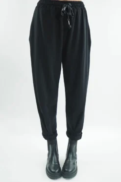 Introducing the epitome of effortless chic, to your wardrobe: our latest piece from Made in Italy clothing, the Made in Italy Apres Skinny Dart Jogger in Black tone, a lightweight cotton stretch skinny jogger that redefines comfort and style. Crafted with meticulous attention to detail, this jogger boasts a skinny fit that brings a touch of sophistication. The cleverly designed dart detail adds a unique dimension to the silhouette, elevating it from the ordinary to the extraordinary. Whether you’re lounging at home, running errands, or meeting up with friends, our Apres Skinny Dart Jogger effortlessly transition from casual to chic, making them a must-have addition to your wardrobe.