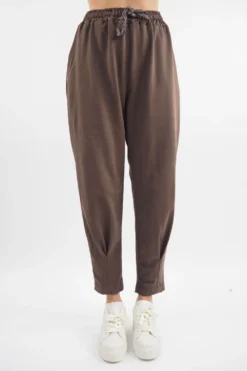 Introducing the epitome of effortless chic, to your wardrobe: our latest piece from Made in Italy clothing, the Made in Italy Apres Skinny Dart Jogger in Truffle brown tone, a lightweight cotton stretch skinny jogger that redefines comfort and style. Crafted with meticulous attention to detail, this jogger boasts a skinny fit that brings a touch of sophistication. The cleverly designed dart detail adds a unique dimension to the silhouette, elevating it from the ordinary to the extraordinary. Whether you’re lounging at home, running errands, or meeting up with friends, our Apres Skinny Dart Jogger effortlessly transitions from casual to chic, making them a must-have addition to your wardrobe.