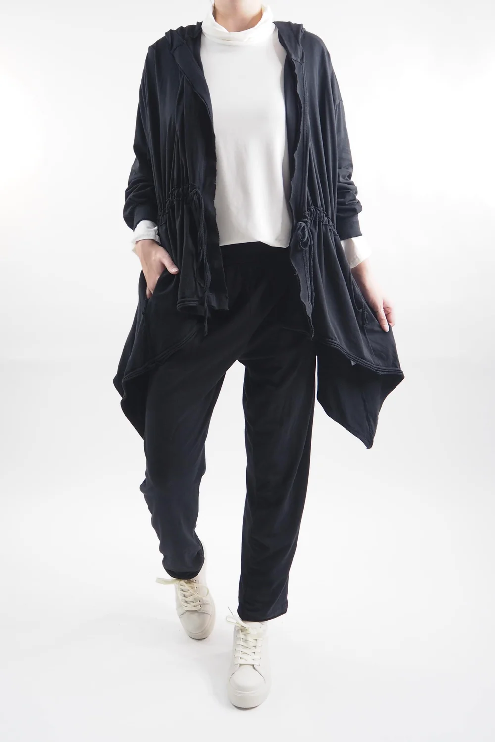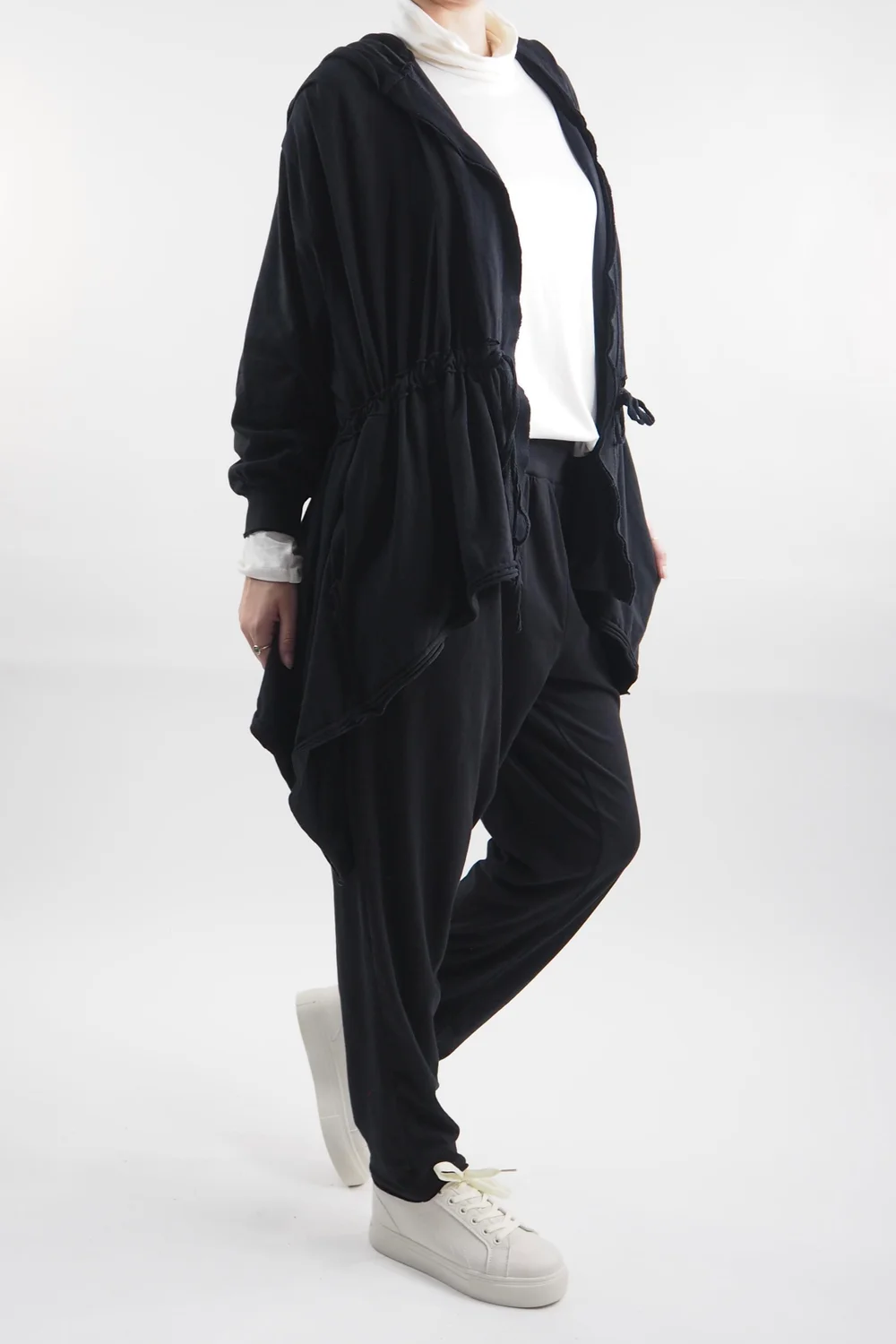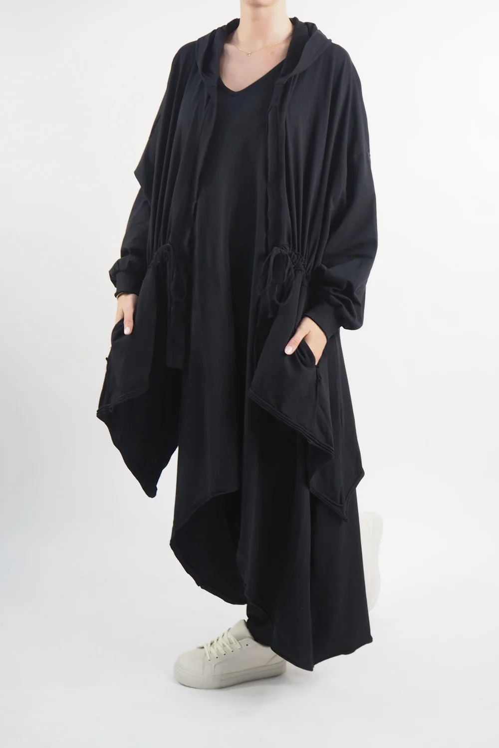 Introducing the ultimate must-have for this season’s wardrobe: our Made in Italy Bodhi Goody Hoodie in Classic Black, a super cool, seam detail, cinch waist hoodie crafted in a lightweight stretch cotton that effortlessly blends style and comfort. Style with our Made in Italy Bodhi Archie Dress & Bodhi Slim Leg Pants for the perfect Lagenlook look.