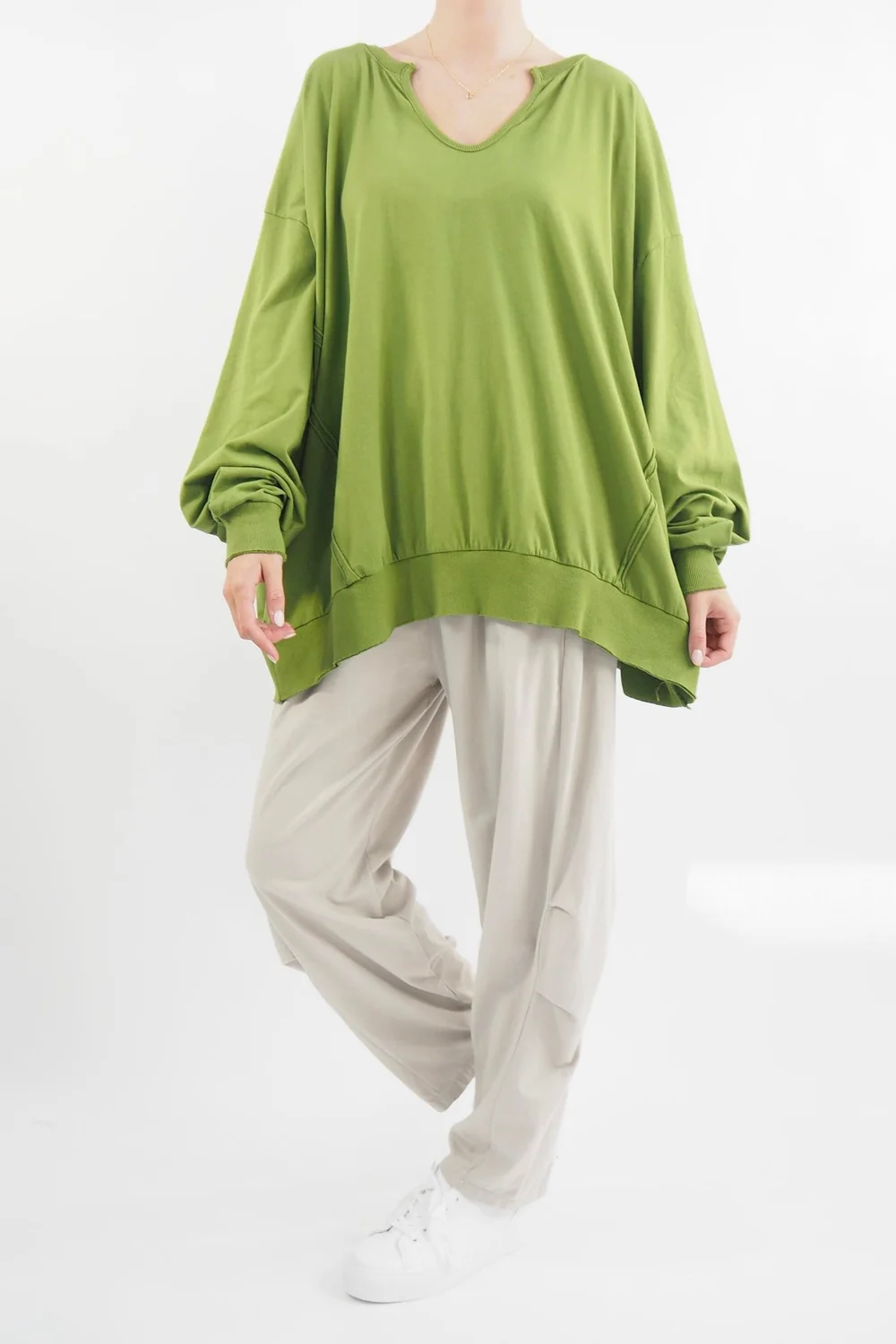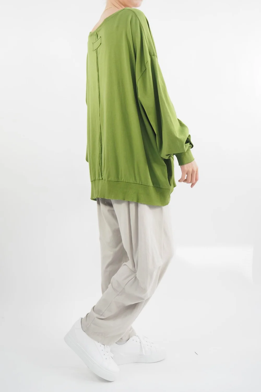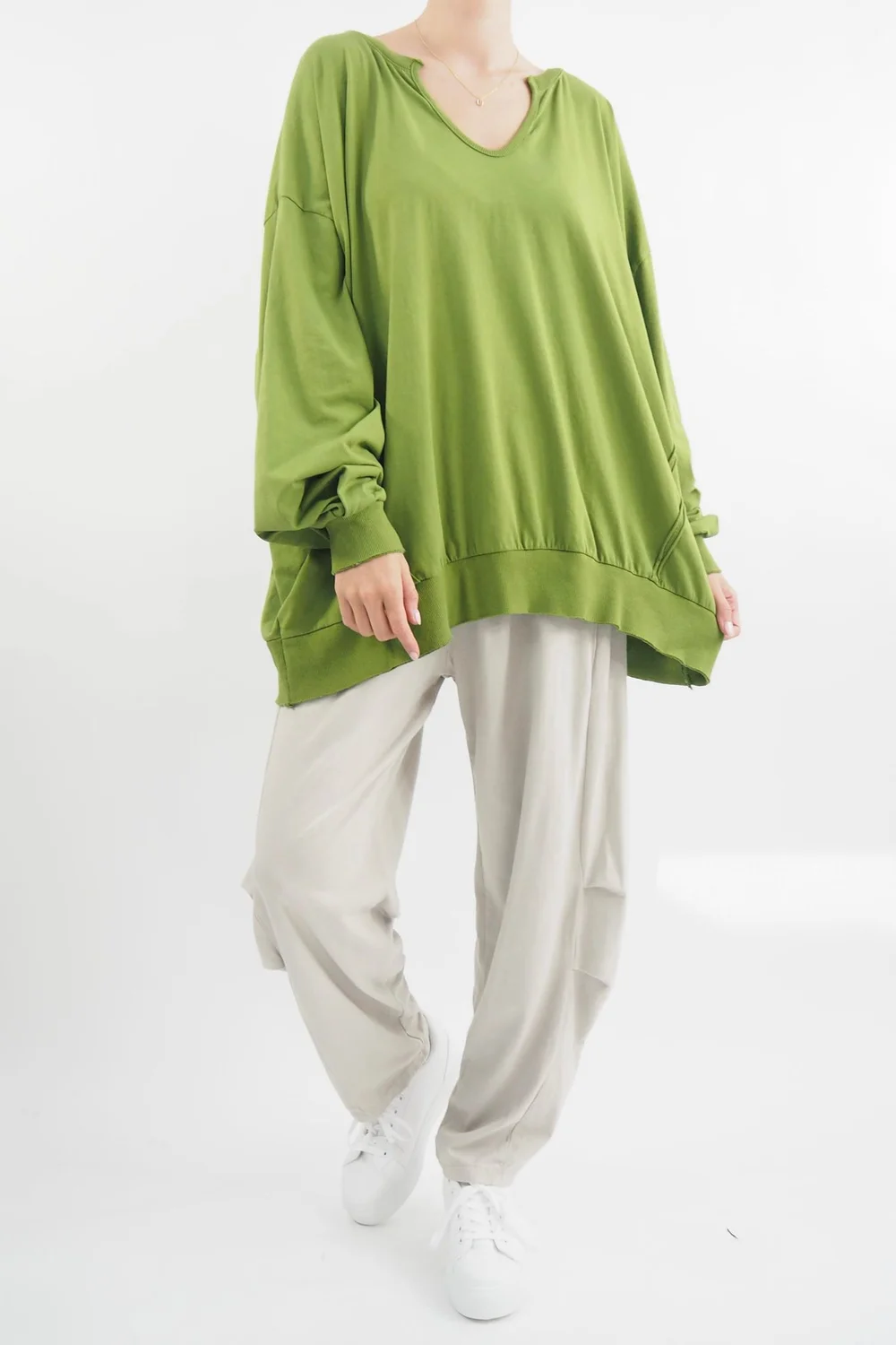 Elevate your casual wardrobe with our Made in Italy Bodhi Slouch V Sweashirt in Matcha, green tone, a quintessential blend of comfort and style. Crafted from a premium composition of 95% cotton and 5% elastane, this sweatshirt offers an indulgent touch of softness while maintaining the perfect amount of stretch for unrestricted movement. Style with our Made in Italy Bodhi Tuck Cocoon Pant, whether you’re unwinding at home or stepping out for a casual outing, this will be the perfect outfit!