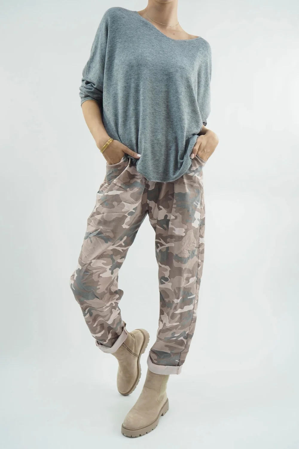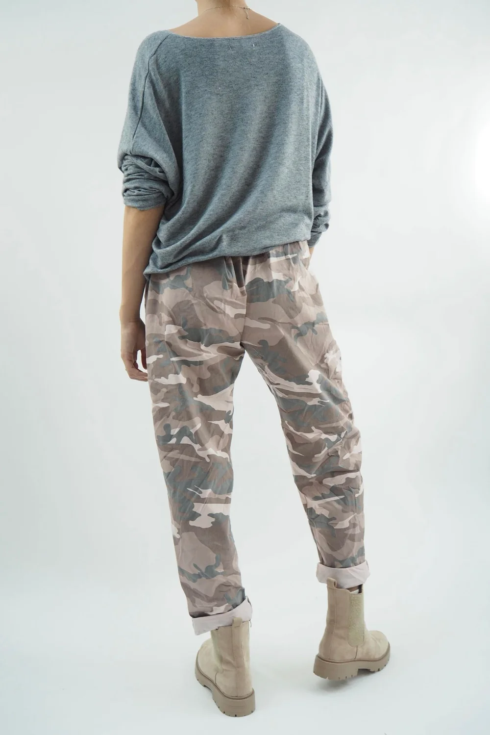 Introducing the epitome of effortless, edgy style and comfort : our Made in Italy Camo Classic Magic Trousers in classic Antique Rose, pink tone. These extraordinary trousers are a game-changer, seamlessly blending unparalleled comfort and timeless elegance. Our Made in Italy Camo Classic Magic Trousers possess a remarkable elasticity that adapts to your every move, making them a dream to wear throughout the day and night.