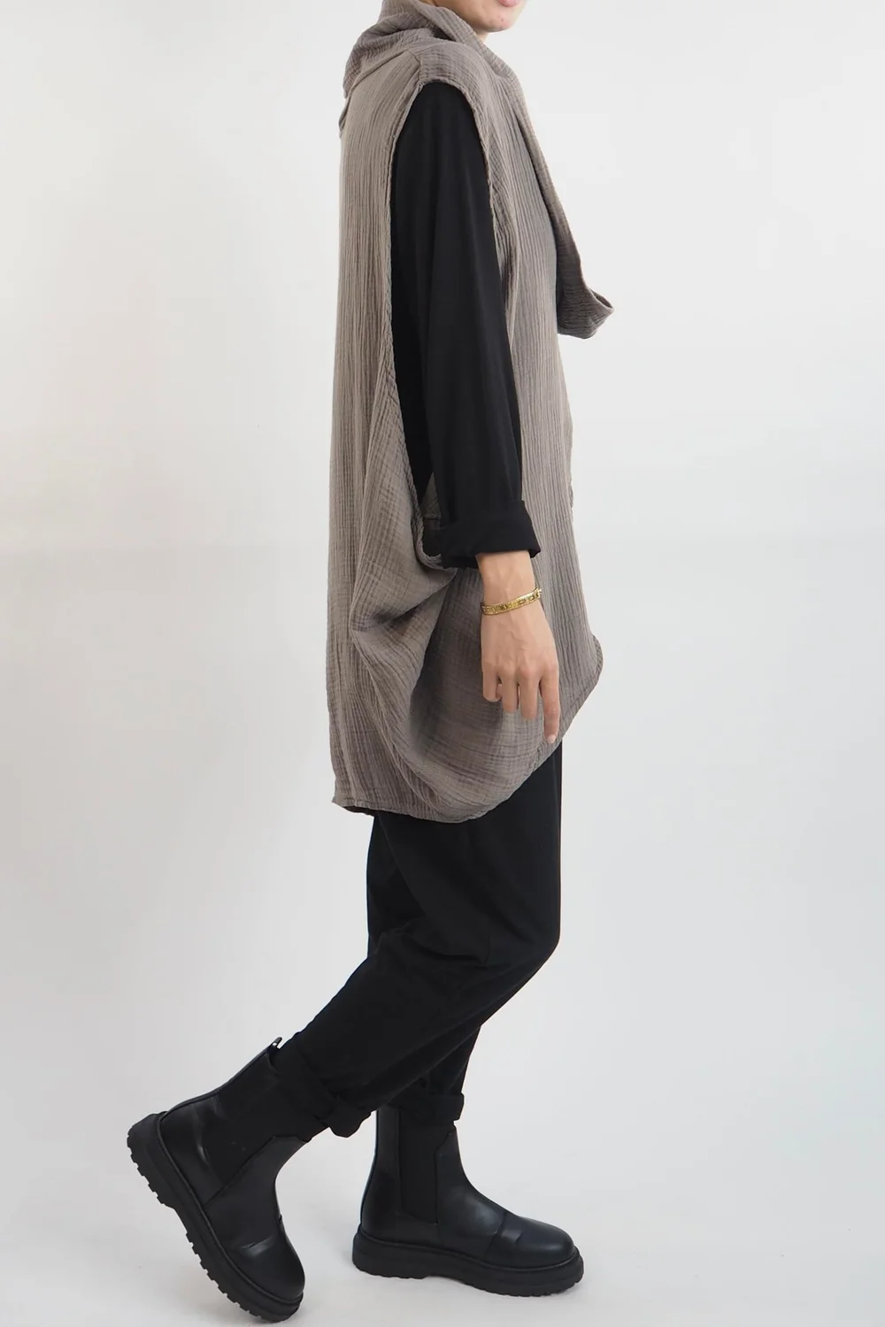 Discover the epitome of effortless chic with our exquisite collection of Made in Italy Obi Crepe Cotton Cross Cowl Tank’s, designed to elevate your style to new heights. Embodying the perfect blend of comfort and sophistication, these fashion-forward garments are a must-have addition to any modern wardrobe. The cross-front detailing not only adds a touch of alluring charm but also creates a flattering silhouette that complements all body shapes. Luxuriate in the sumptuous fabrics that gracefully drape and flow with every step, ensuring you exude grace and poise with every movement. Whether paired with tailored trousers for a refined office ensemble or dressed down with distressed denim for a day of casual glamour, this piece effortlessly epitomize the art of versatile elegance.